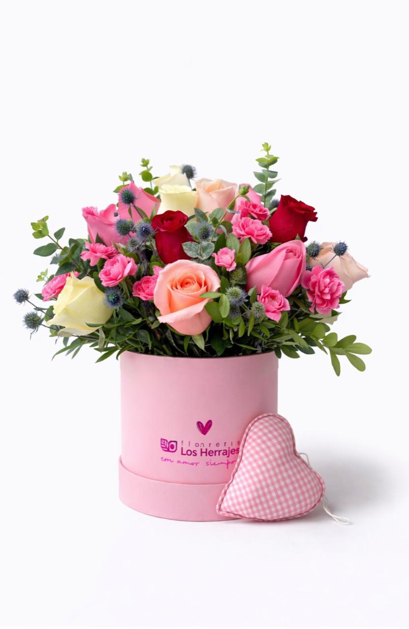 Box S mix de 16 rosas rosadas +corazon de tela