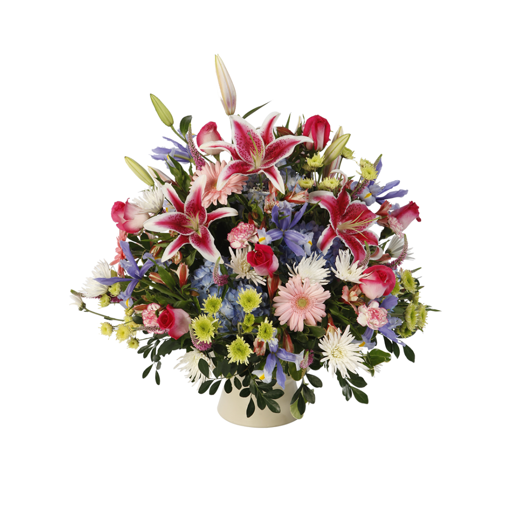 BASE DE CERAMICA, CON FLORES VARIADAS Y MIXTAS.